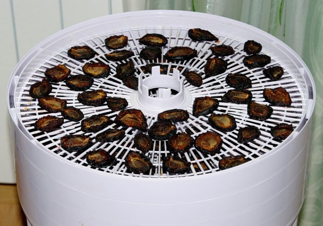 Els fruits preparats es col·loquen a l’assecador a diversos nivells. S'han d'assecar a una temperatura de 65 graus. L'aparell s'encén durant 40 minuts i després es deixa refredar una hora. Aquestes accions es realitzen 2-3 vegades, després de la qual la pruna seca es posa sobre paper i es deixa "reposar". L’endemà es repeteix el procediment.