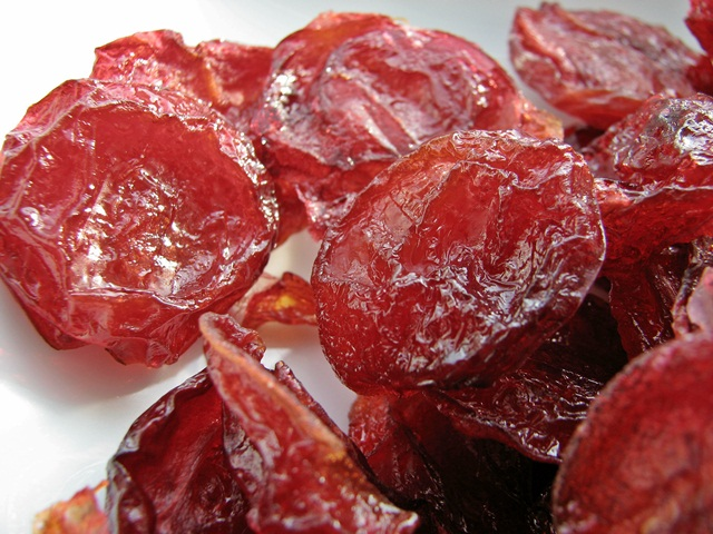 Moltes varietats de pruna de cirera també es distingeixen per una pell tegumentària groga. Es recomana assecar aquest fruit de la mateixa manera que per a les prunes normals. El producte acabat té un sabor àcid, de color marró o marró. En comparació amb les prunes seques regulars, és una mica més resistent.