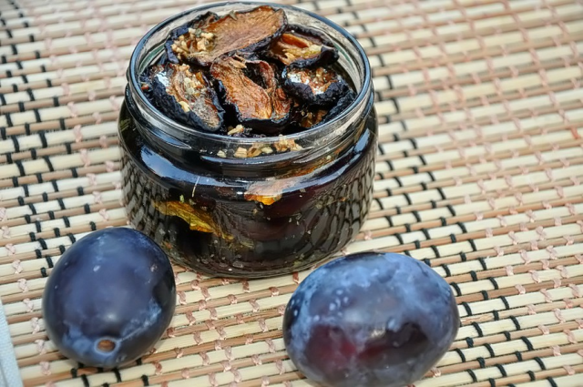 La recepta de les prunes picants assecades al sol en oli va néixer una vegada a Itàlia. La combinació de mel i herbes aromàtiques dóna una "nota" especial al característic sabor agredolç d’aquest aperitiu.