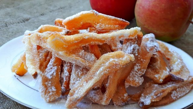 Llesques plegables. Amb aquest mètode de producció, les rodanxes de fruita es bullen en almívar fins que queden transparents i es tornen a llençar a un colador o colador per assecar-les. La superfície del tractament es cobreix amb una pel·lícula seca i dolça.