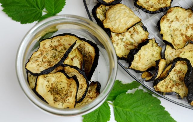 És necessari assecar les albergínies durant l’hivern fins que estiguin completament cuites, ja que aquest producte no està subjecte a un emmagatzematge a llarg termini en forma de cocció a mitja al forn. La condició de les verdures seques es troba entre les seques i les fregides. Podeu determinar la preparació si feu clic a la fruita. Si la peça és lleugerament elàstica, ja està llesta.