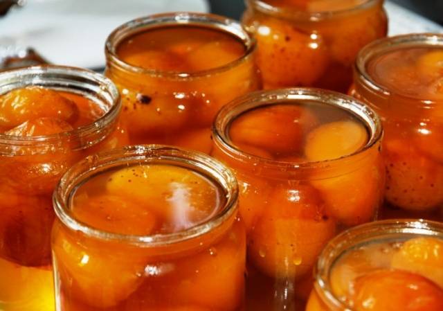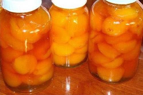 S’enfosa 1 kg d’albercocs dolços madurs, s’aboca en un got d’aigua i es posa en una cassola a foc lent. La fruita es bull durant almenys 20 minuts fins que estigui tendra. Després es distribueixen en pots estèrils, s’omplen de suc calent i es trenquen. Podeu escalfar els albercocs només fins que bullin i deixin anar el suc, i després poseu-los en pots i esterilitzeu-los durant 10-15 minuts.