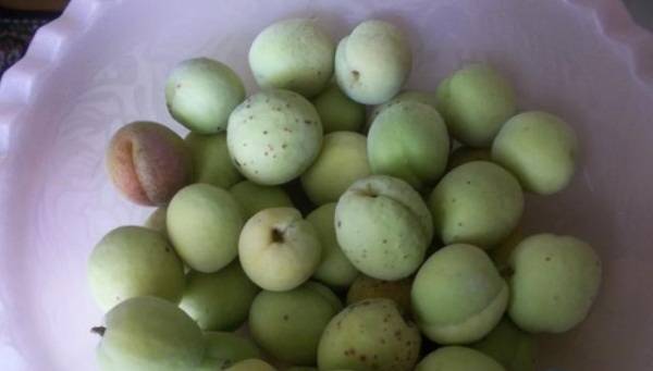 Els albercocs immadurs encara no han tingut temps de formar finalment una pedra, per tant, per a una bona impregnació de la fruita amb almívar, s’han de perforar amb un punxó o una agulla llarga en diversos llocs. Després, cal blanquejar-les a fons en un colador, submergint-les en aigua bullent diverses vegades i mantenint-les durant un minut. Després eixugueu els albercocs.