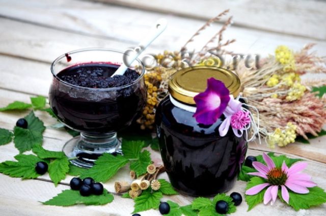 - Poseu els plats amb puré de baies a foc mitjà i coeu-los, sense deixar de remenar, durant un quart d’hora. Poseu la melmelada ja feta en calent en pots secs esterilitzats, segeleu-la bé amb tapes de llauna, refredeu-la completament i envieu-la a l'habitació fresca.