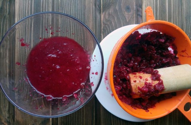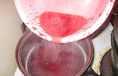 - La massa de baies es frega per un colador, separant el suc, esprement la polpa amb llavors i pela i combinant-la amb sucre granulat.