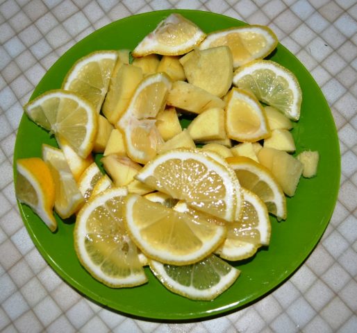 Per preservar els beneficis dels ingredients, rasqueu la pell de gingebre amb una cullera o peleu-la amb un tallador de verdures. Això ajudarà a preservar els màxims elements útils. És aconsellable utilitzar els cítrics completament, excloent les llavors, per tant, és tan important rentar-les bé abans d’afegir-les a la peça.