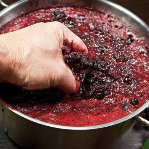 - El chokeberry s’amassa amb les mans de manera que cada baia sigui aixafada.
