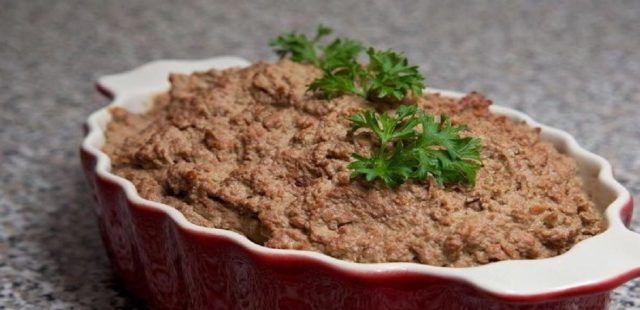 Podeu fer servir un petit secret per reduir l’olor natural del fetge del berenar acabat. Després de fregir els ingredients principals, s’afegeix al plat alls picats frescos. El plat adquireix un característic aroma brillant que no deixarà indiferent a ningú. Per a la recepta de paté de fetge necessitareu: