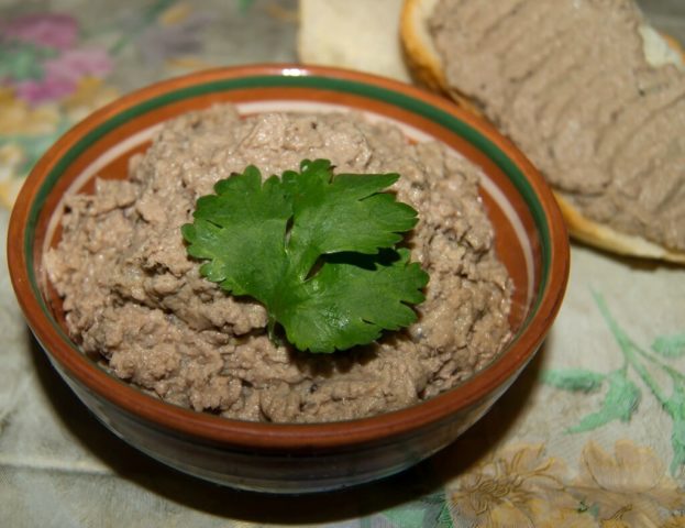 Tots els components del futur paté es refreden a temperatura ambient i es fan enrotllar a través d’un molinet de carn. Per obtenir una estructura més delicada i uniforme, podeu tornar a moldre la massa. Tots els ingredients es barregen amb mantega fins que quedi homogeni i es refrigeri durant un parell d’hores.