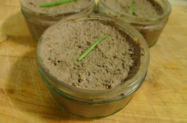 La massa acabada es salpura al gust i es passa 2 vegades per un triturador de carn. El futur paté es barreja amb mantega. Si la consistència del producte acabat és massa densa, es pot diluir amb una mica de nata o llet. La massa es transfereix a un motlle i es posa a la nevera fins que es solidifiqui completament.