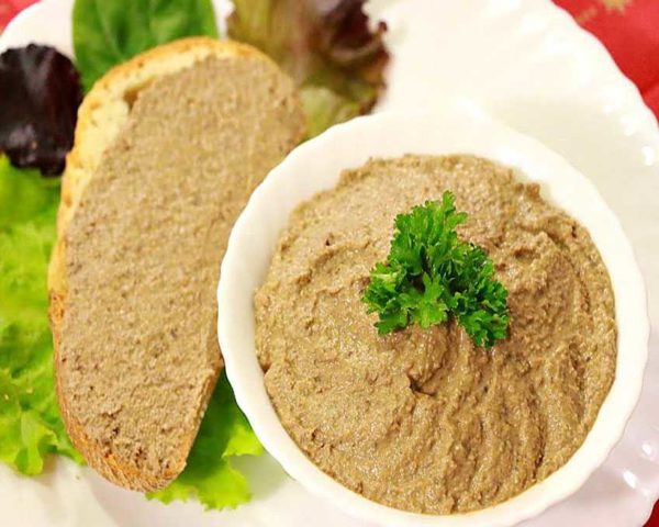 El paté de fetge d'oca casolà resulta més saborós i saludable en comparació amb els productes que es poden comprar a les botigues. L’aperitiu surt tendre i airejat, es fon a la boca i deixa un agradable regust. Per a ella, no només es pot prendre el fetge, sinó també carn, condimentar amb pastanagues, cebes i les seves espècies preferides.
