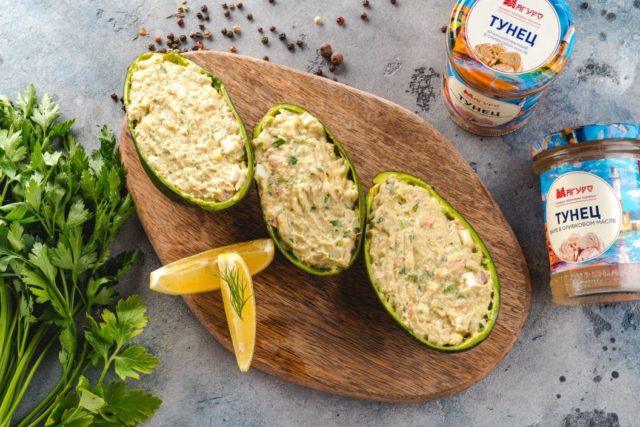 - L’oli i el líquid s’escorren de les conserves. L’alvocat es pela i s’amassa amb el peix.