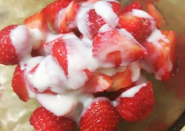 La llet condensada conté prou sucre, de manera que no cal endolcir les maduixes