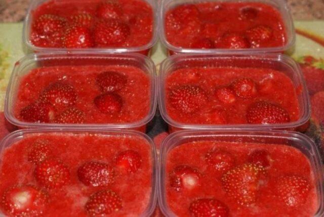 Podeu congelar les maduixes per emmagatzemar-les a l’hivern no només en general, sinó també en forma de puré. Les postres ocupen poc espai a la nevera i continuen sent molt saludables. El sucre actua com a conservant natural i perllonga encara més la vida útil.