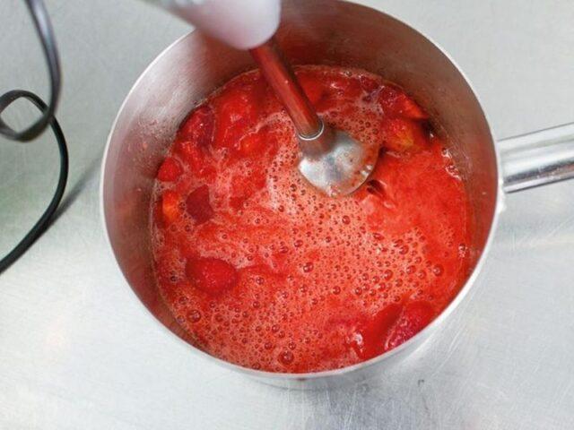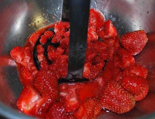 Quan es processen grans quantitats de maduixes, és més convenient utilitzar una batedora submergible o fixa per picar. El diagrama té aquest aspecte: