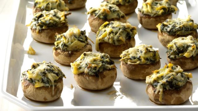- Fregiu les cebes i els bolets picats. Finalment, afegiu-hi els daus congelats d’espinacs blancs i coeu-los fins que estiguin cuits, sense oblidar d’afegir les espècies i la sal.
