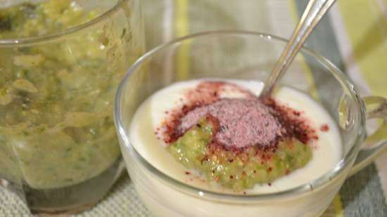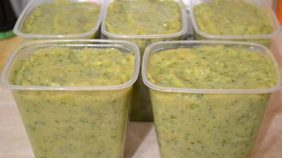 Afegiu sucre granulat a la massa triturada, en proporció 1: 1, barregeu-ho bé. No cal esperar que el sucre es dissolgui. Introduïu el puré als contenidors immediatament. En cas contrari, la massa s’enfosqueix a causa del contacte del iode amb l’aire.