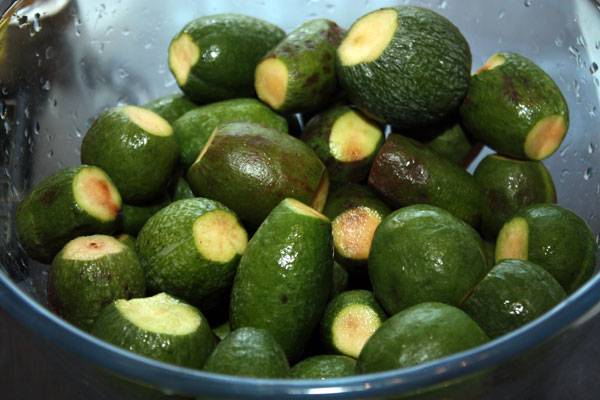 - Ordenem, eliminem les fruites amb el mínim signe de danys i la pell negra. Al cap i a la fi, un feijoa sa té una superfície verda uniforme.